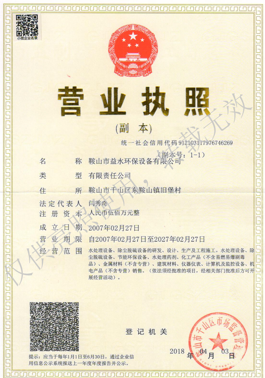 鞍山市益水環保設備有限公司,占地2萬平方米,生產車間3000平方米,公司有員工100余人,其中高級工程師2人、工程師10人、大專以上學歷占員工的30%,具有較高的技術水平和研發能力。同時我廠擁有專業生產、檢測設備30余臺,具有較強的生產加工能力,是東北地區空氣凈化設備、水處理設備、除塵抑塵設備的骨干生產企業,在環保機械設備行業具有較高的知名度。