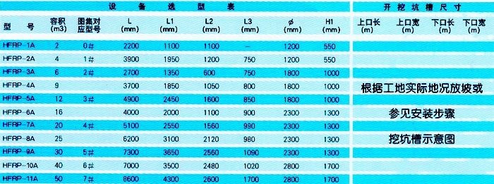 HFRP-A環保型埋地式整體化糞池選型表
