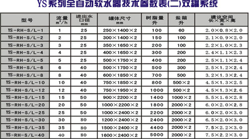 全自動軟水器的工作參數
