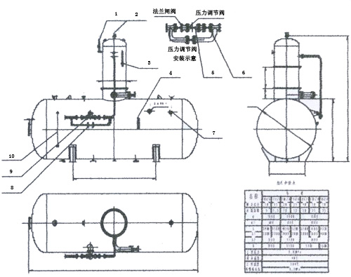 1.安全閥 2.截止閥 3.壓力式溫度計 4.溫度計 5.壓力調節閥 6.進氣閘閥 7.液位繼電器 8.補給水閘閥 9.給水調節閥 10.液位計